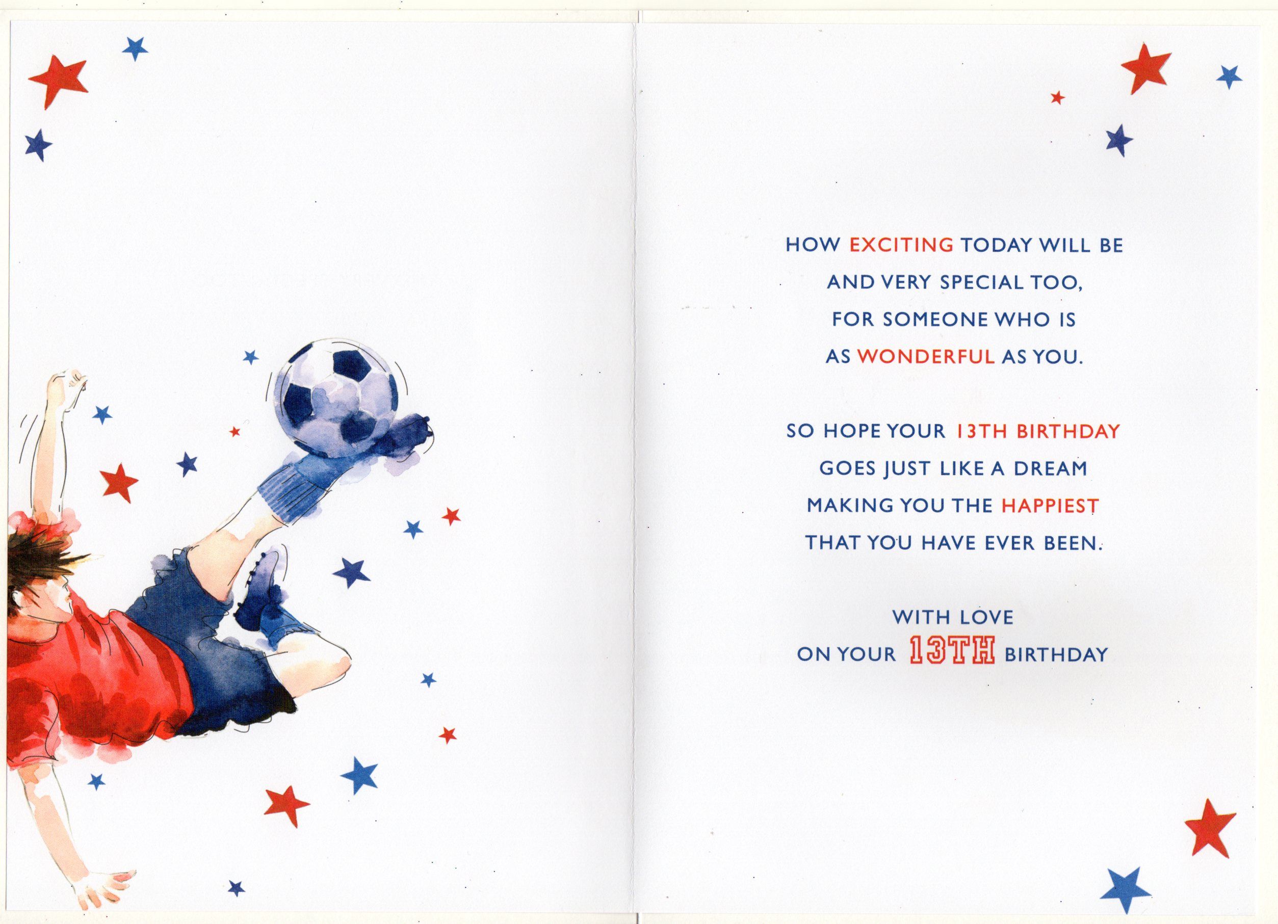 Inside reads: How Exciting Today Will be and very special too, for someone who is as wonderful as you. so hope your 13th Birthday goes just like a dream making you the happiest that you have ever been. with love on your 13th Birthday.