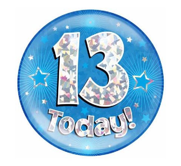 Blue Holographic Birthday 13th Jumbo Pin Badge