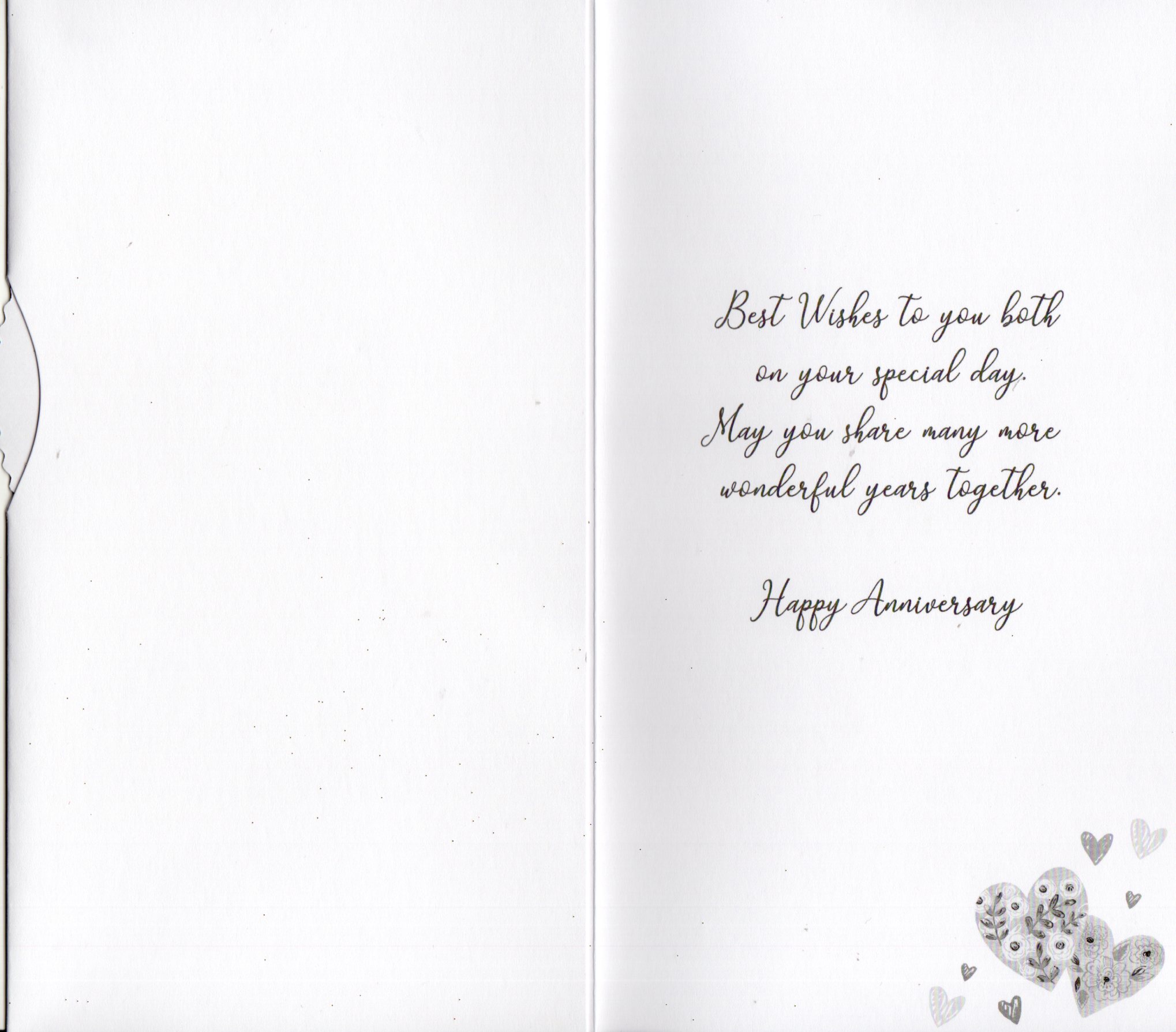 Inside reads: Best wishes to you both on your special. May you share many more wonderful years together. Happy Anniversary