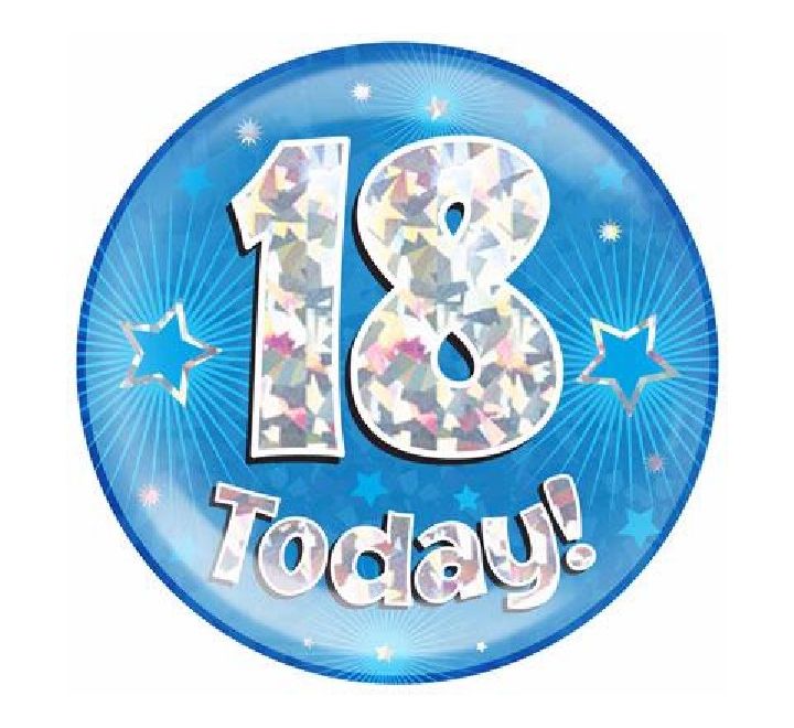 Blue Holographic Birthday 18th Jumbo Pin Badge