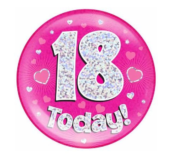 Pink Holographic Birthday 18th Jumbo Pin Badge
