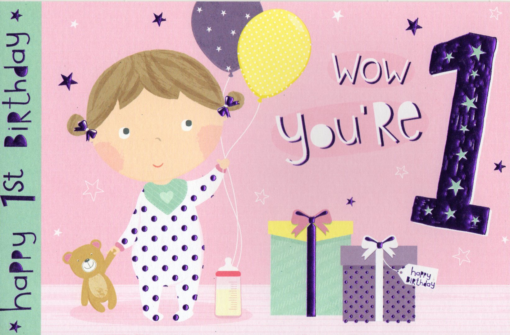 On the front the card reads: Wow You're 1. Happy Birthday.