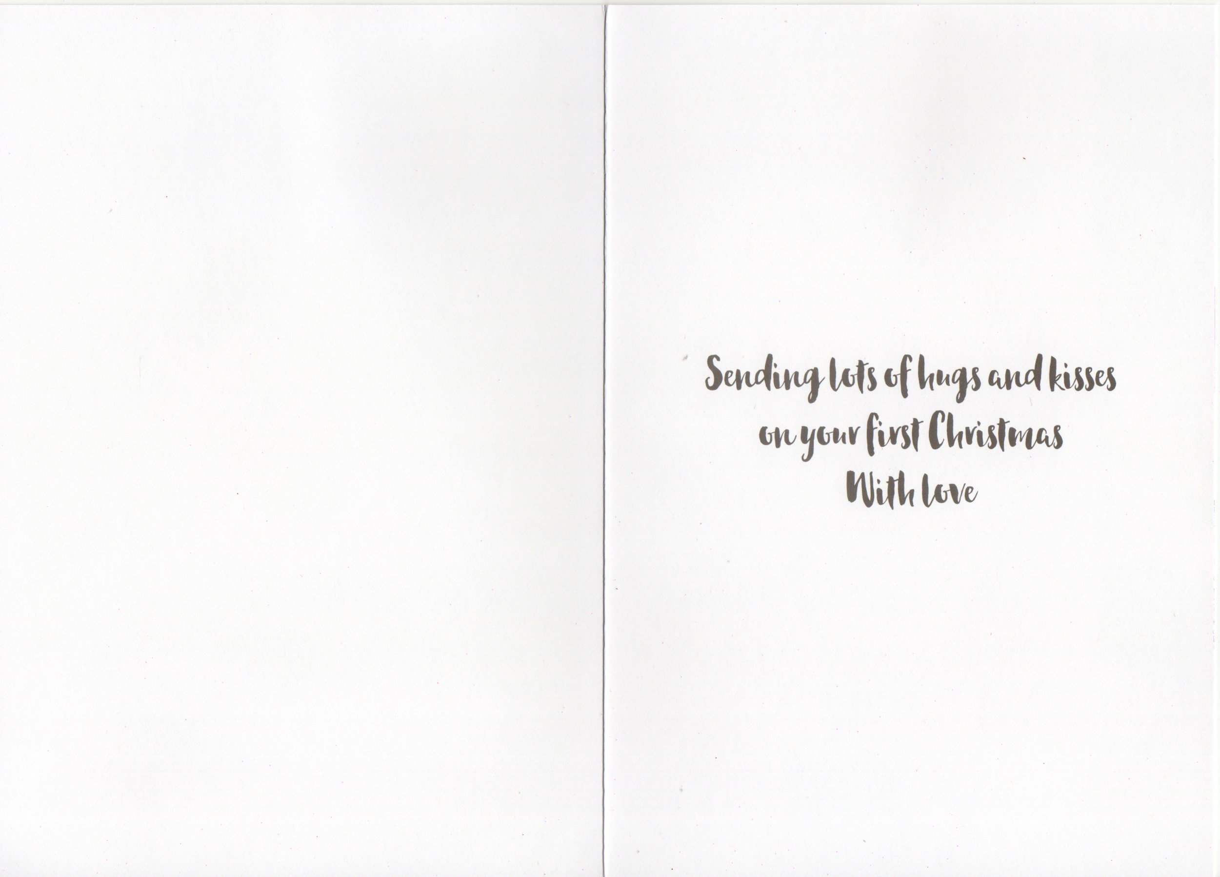 Inside reads: Sending lots of hugs and kisses on your first Christmas with love