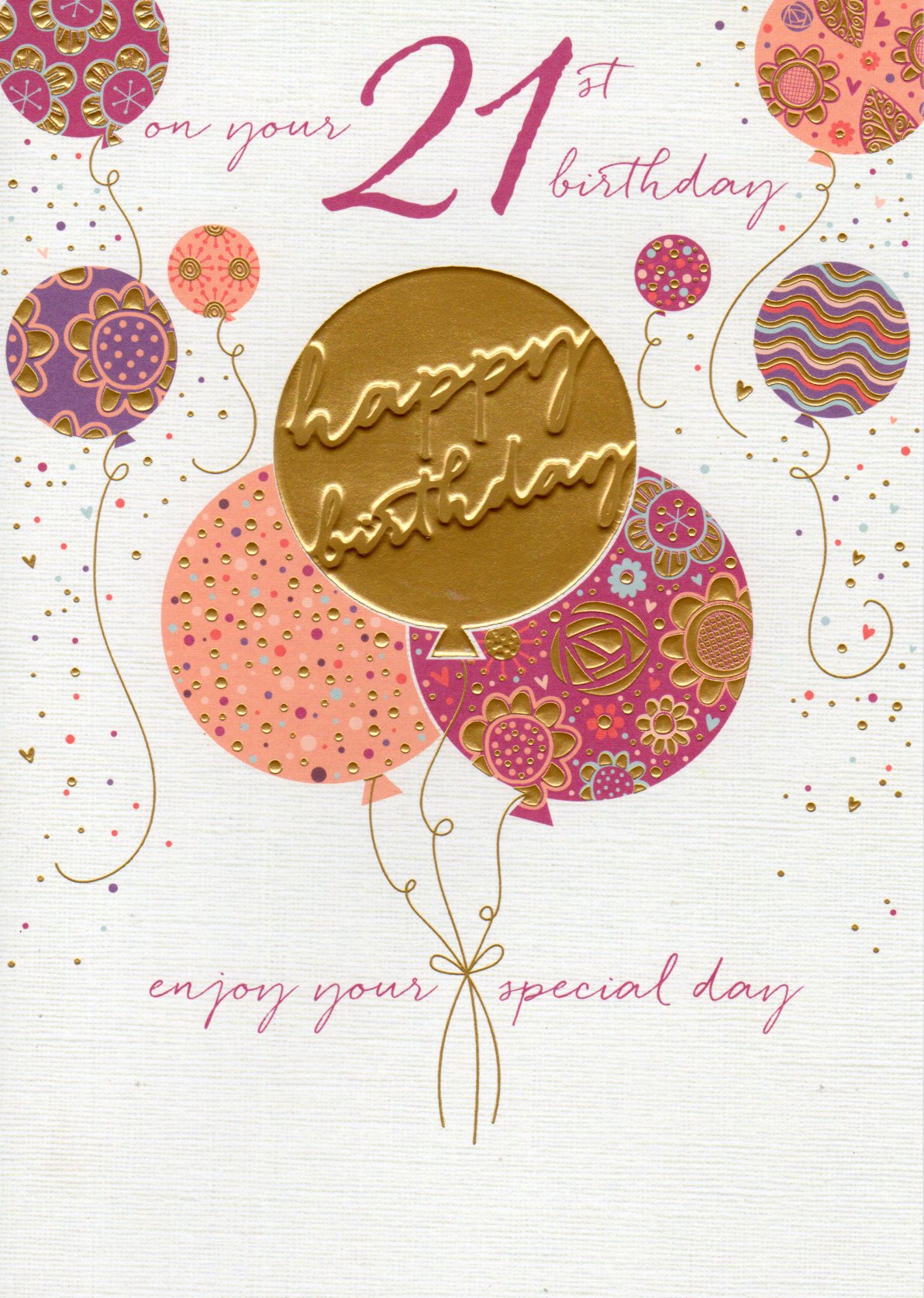 On the front the card reads: On Your 21st Birthday enjoy your special day