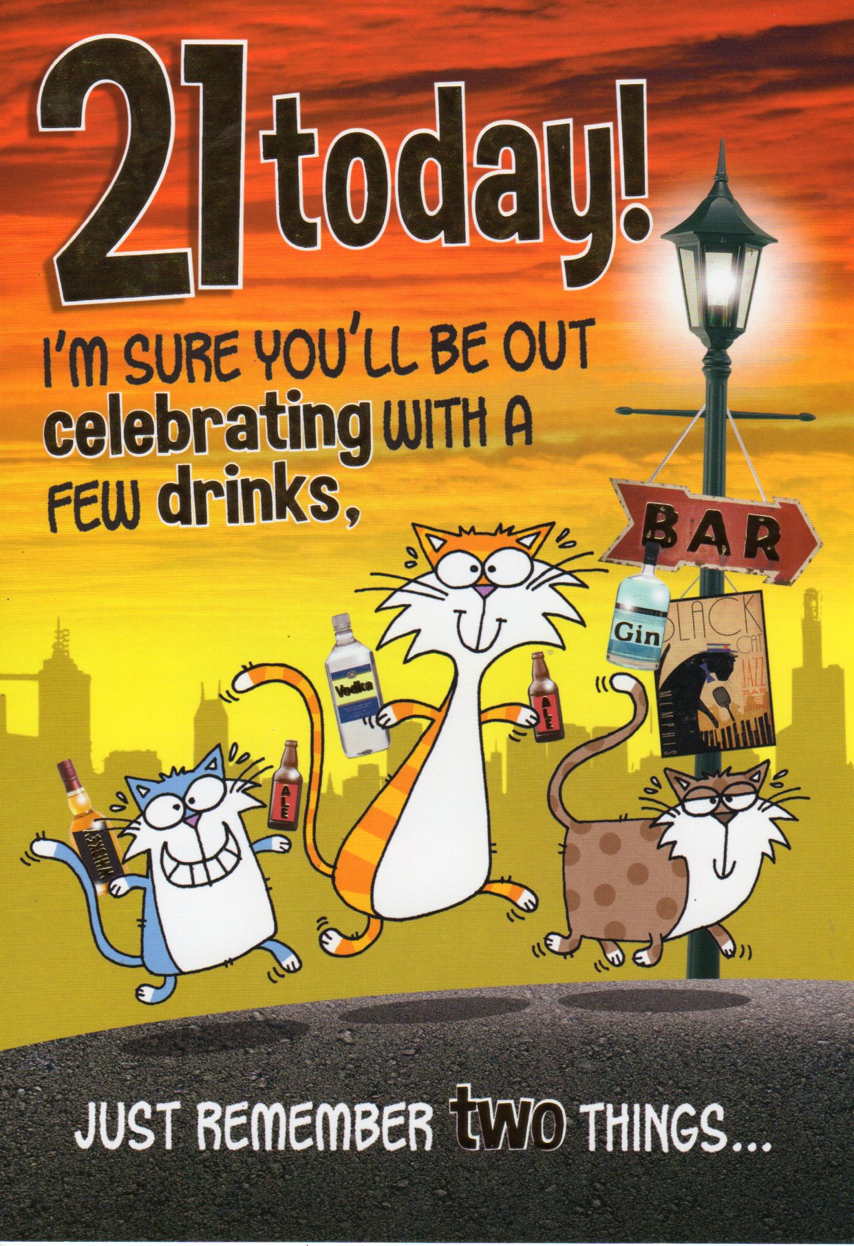 On the front the card reads: 21 Today! i'm sure you'll be out celebrating with a few drinks, just remember two things...