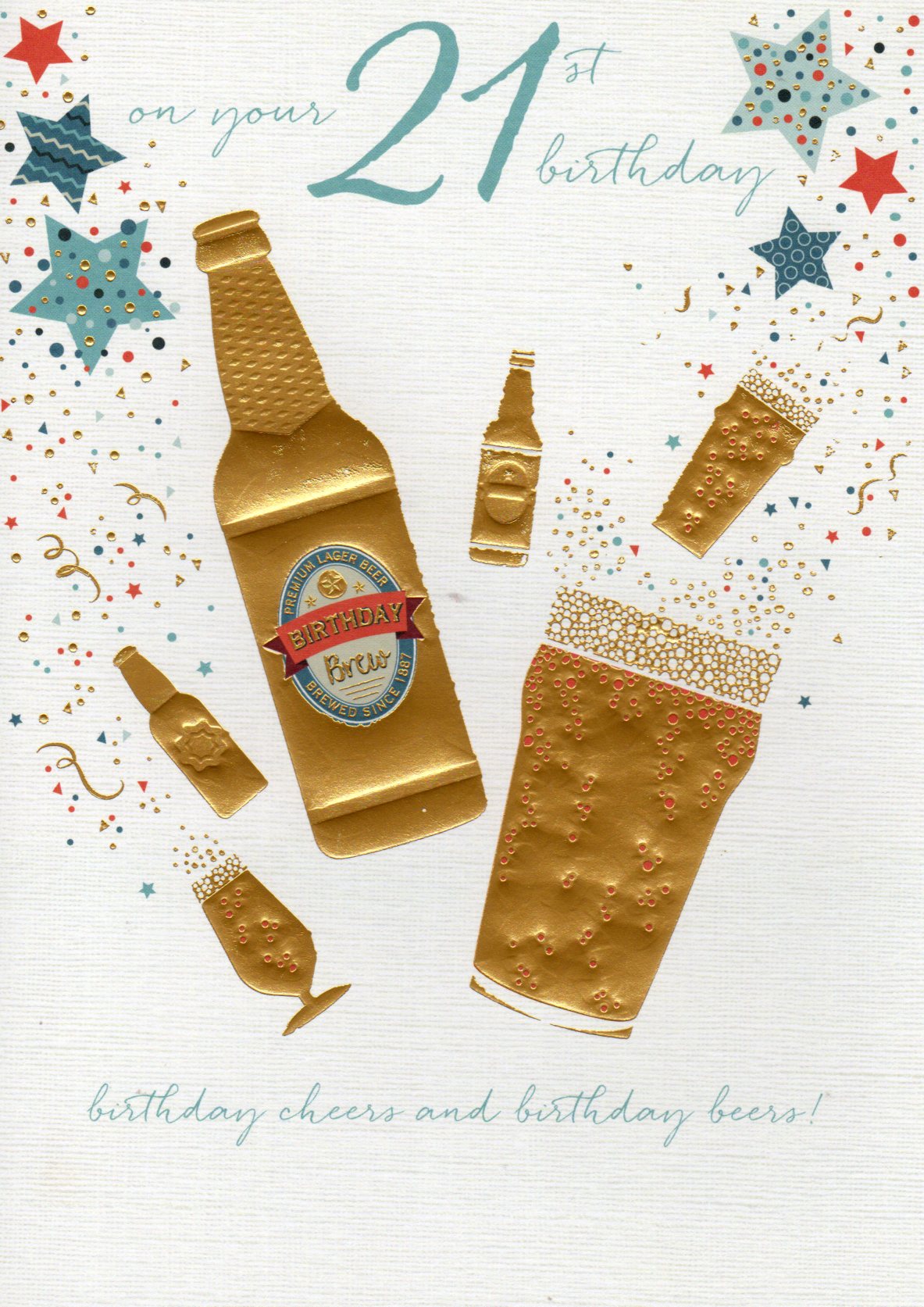 On the front the card reads: On your 21st Birthday... Birthday cheers and birthday beers!