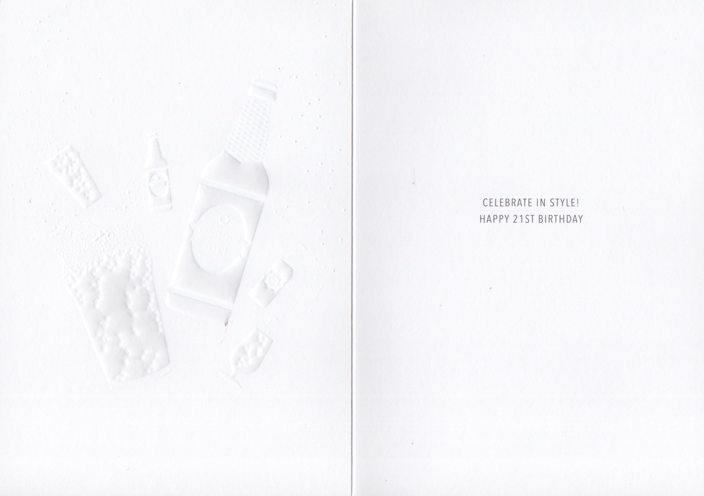 Inside reads: CELEBRATE IN STYLE! HAPPY 21 ST BIRTHDAY.