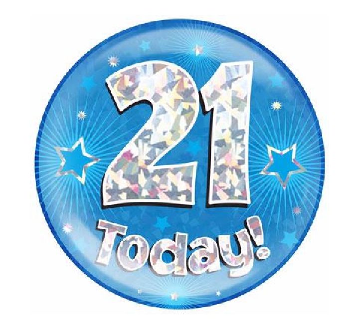 Blue Holographic Birthday 21st Jumbo Pin Badge