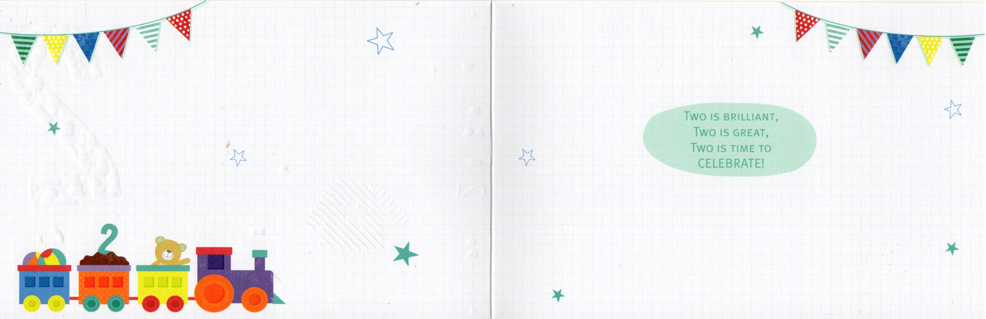 Inside reads: Two is brilliant, Two is Great, Two is Time To Celebrate!