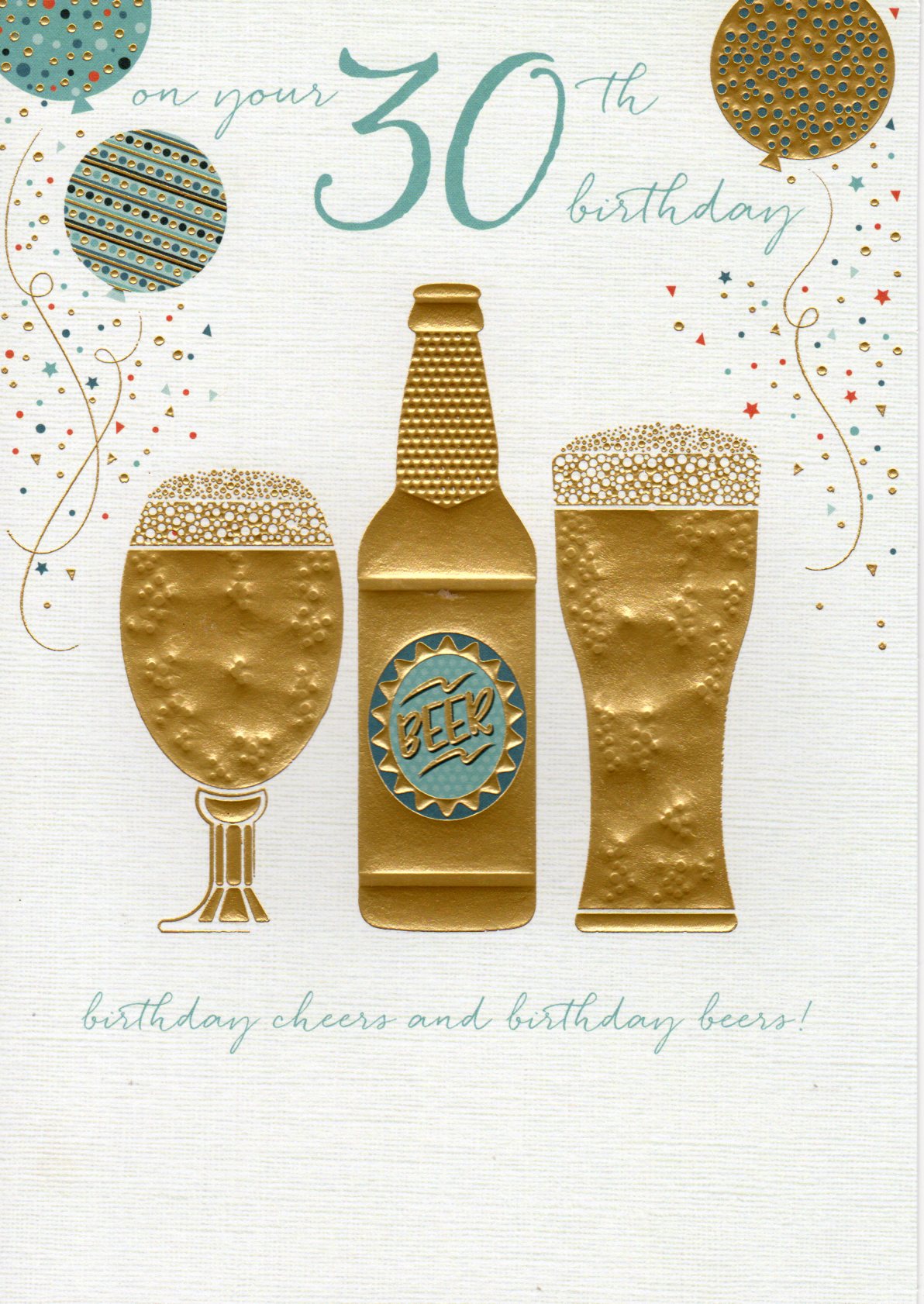 On the front the card reads: On your 30 th Birthday..... birthday cheese and birthday beers!