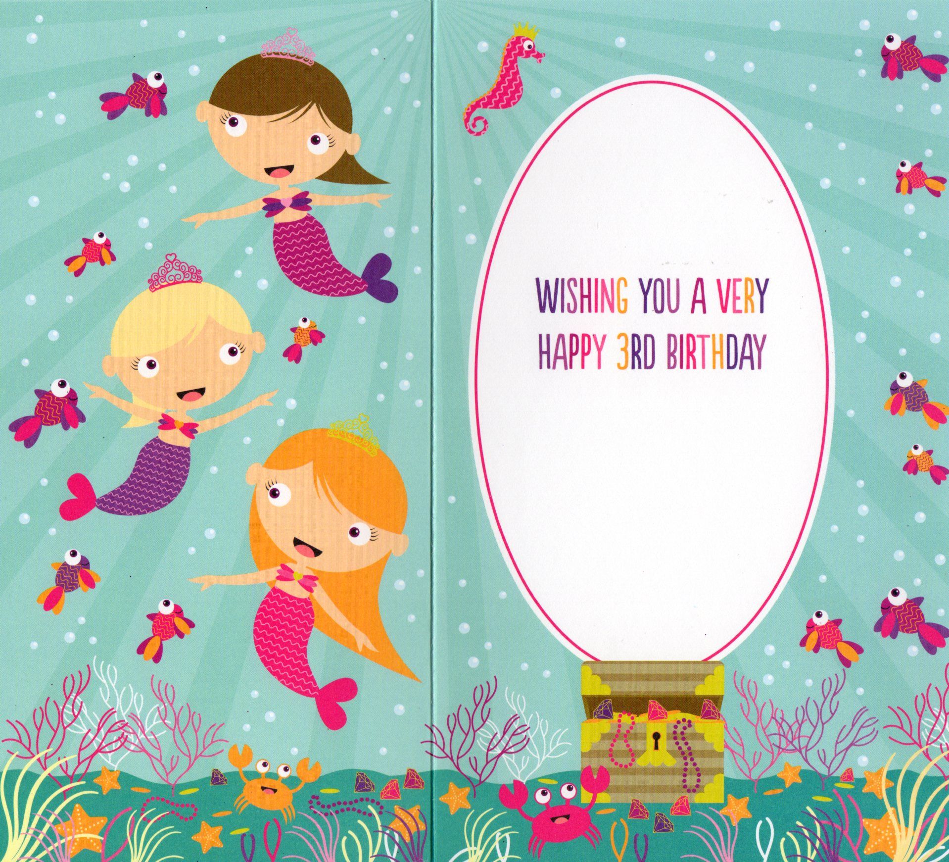 Inside reads:Wishing you a very happy 3rd Birthday.