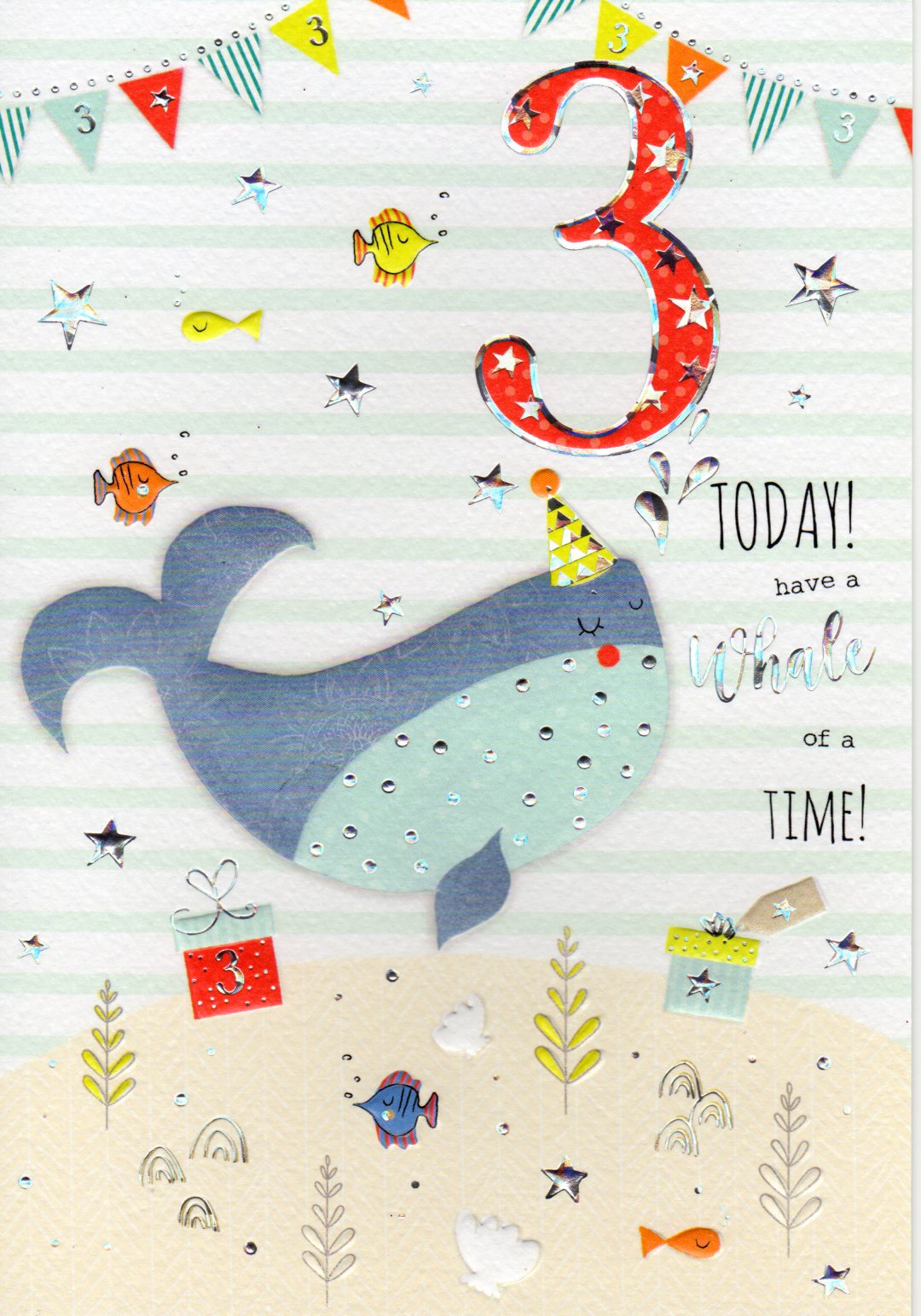 On the front the card reads: 3 Today! Have a whale of a Time!