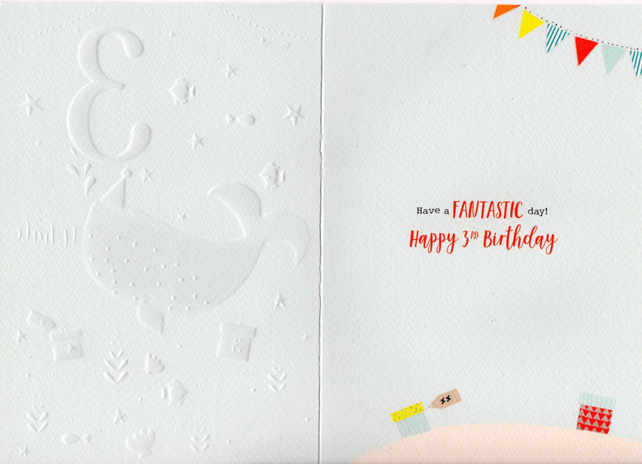 Inside reads: Have a Fantastic day! Happy 3rd Birthday
