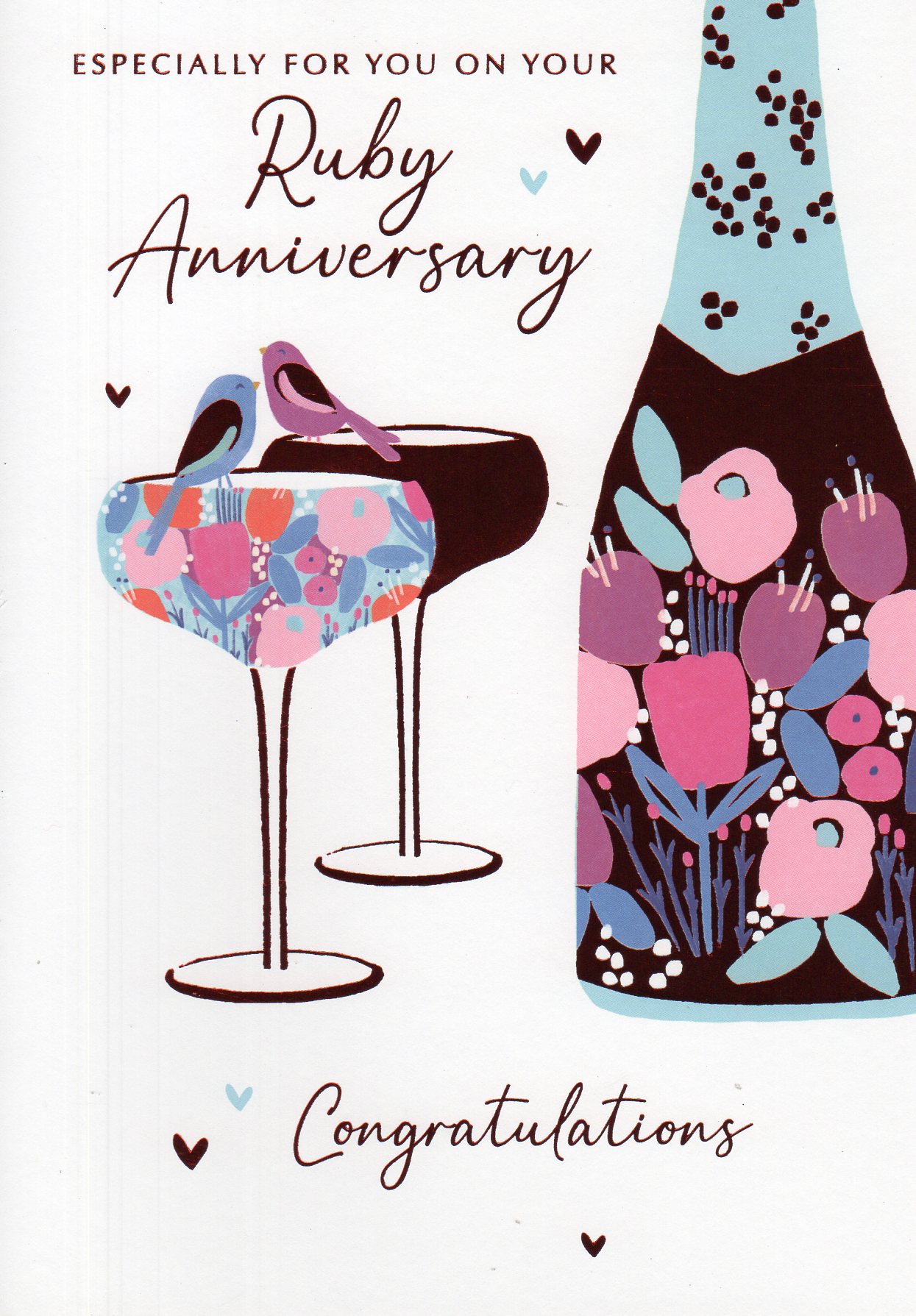 In the front the card reads: Especially For You On Your Ruby Anniversary Congratulations