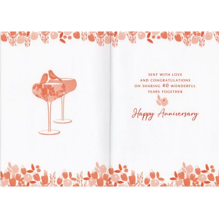 Inside reads: Sent With Love And Congratulations On Sharing 40 Wonderful Year Together Happy Anniversary