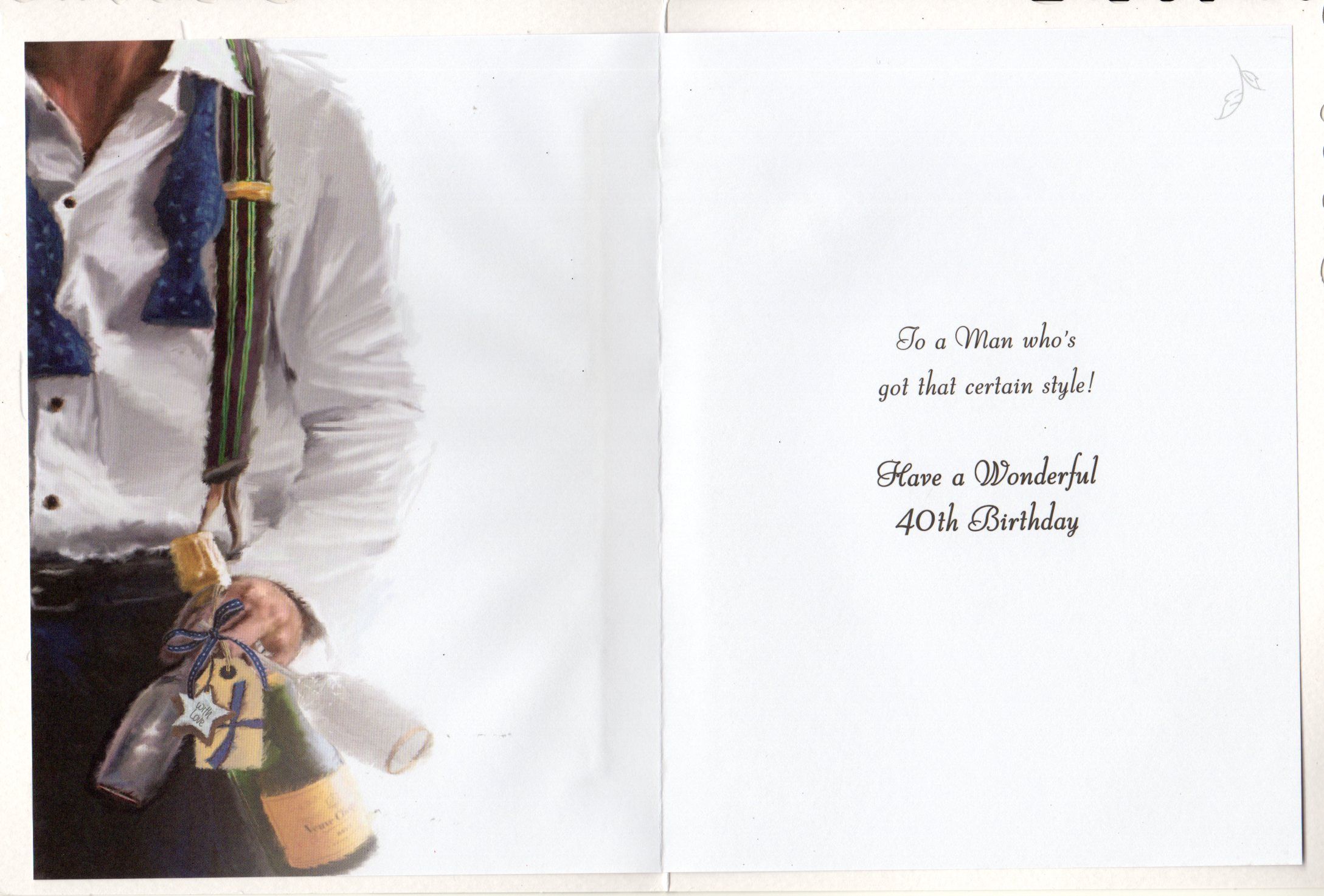 Inside reads: To a man who's got that certain style! Have a wonderful 40th Birthday.