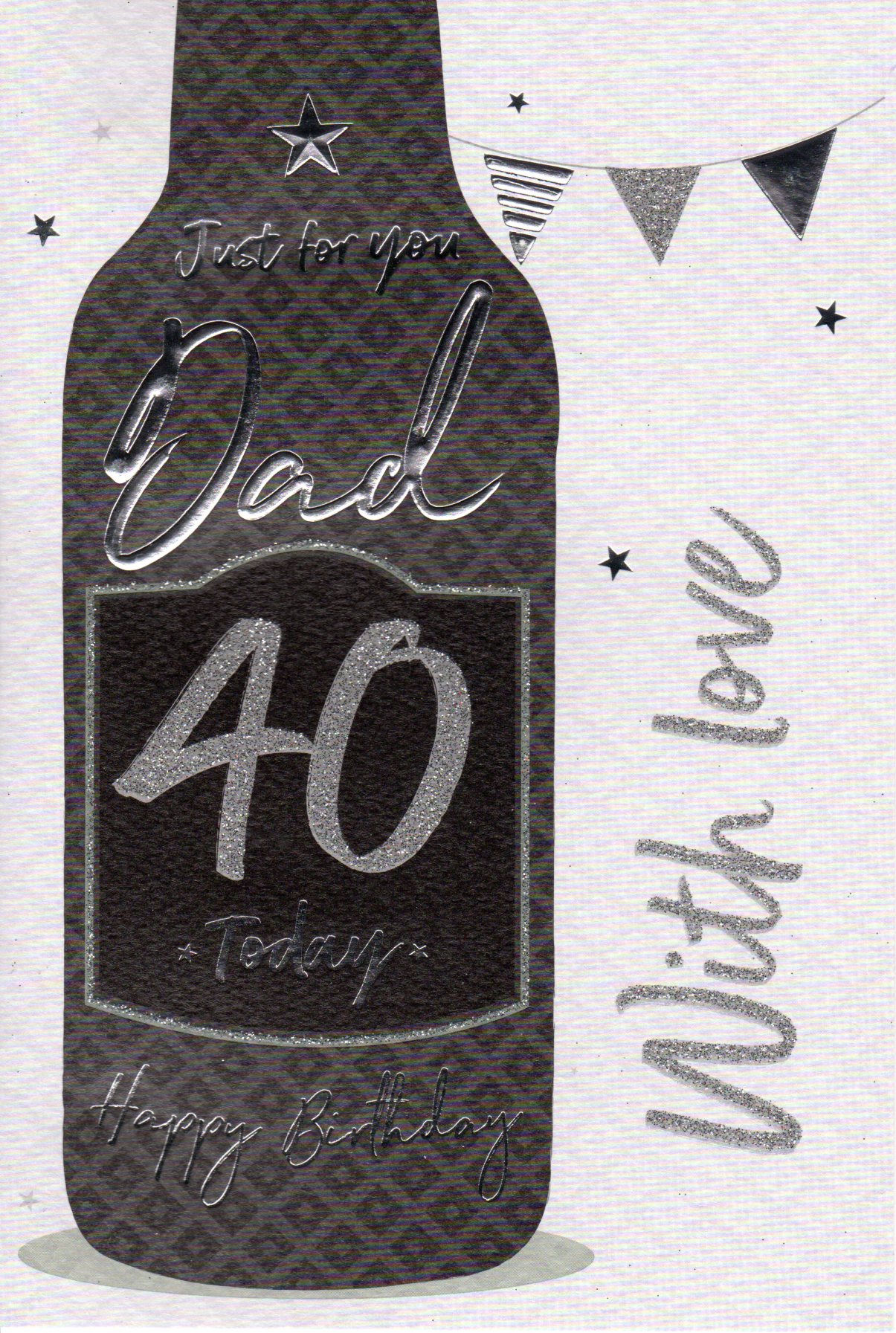 On the front the card reads: Just for you Dad 40 today happy Birthday with love
