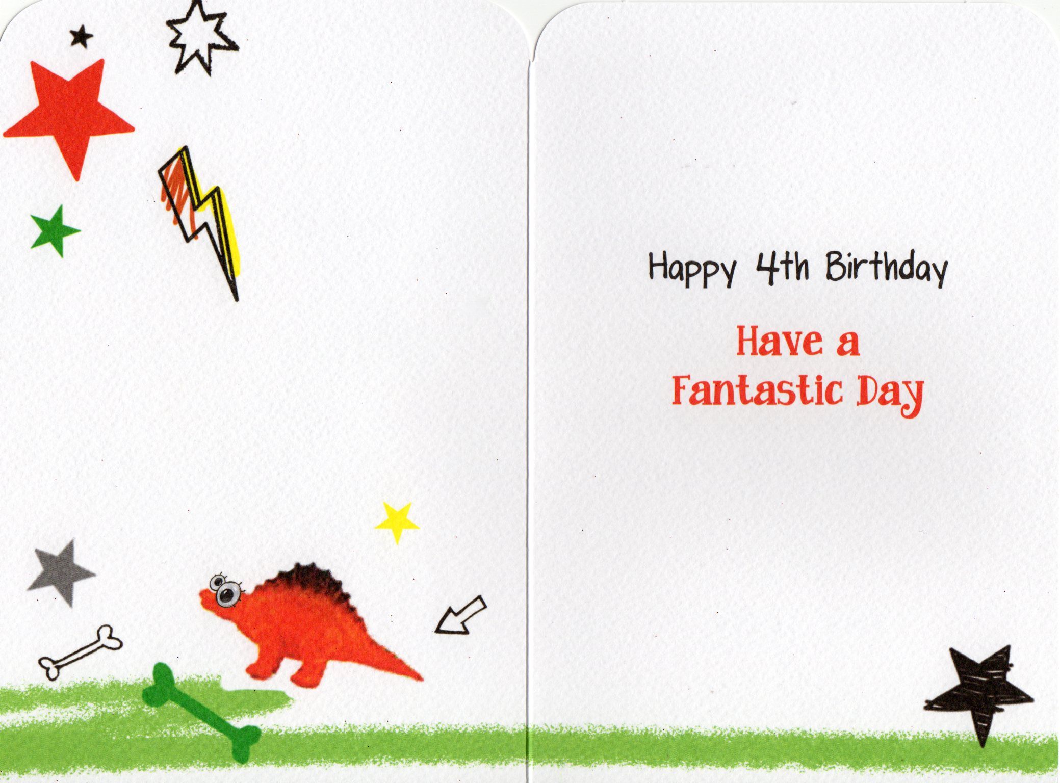 Inside reads: Happy 4th Birthday. Have a Fantastic Day!