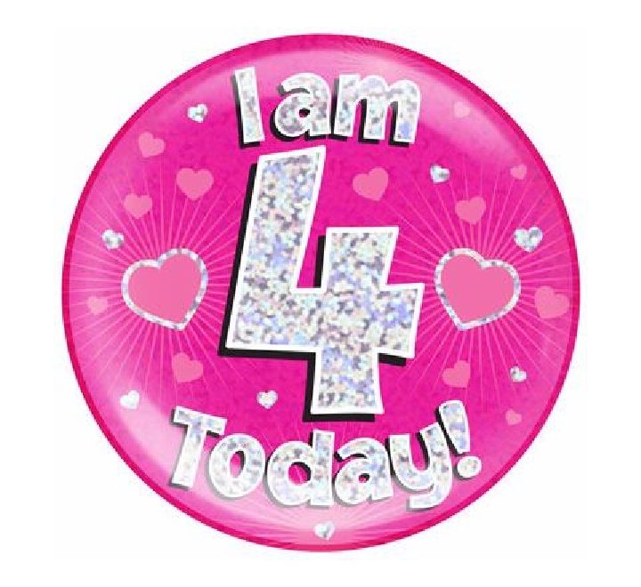 Pink Holographic Birthday 4th Jumbo Pin Badge