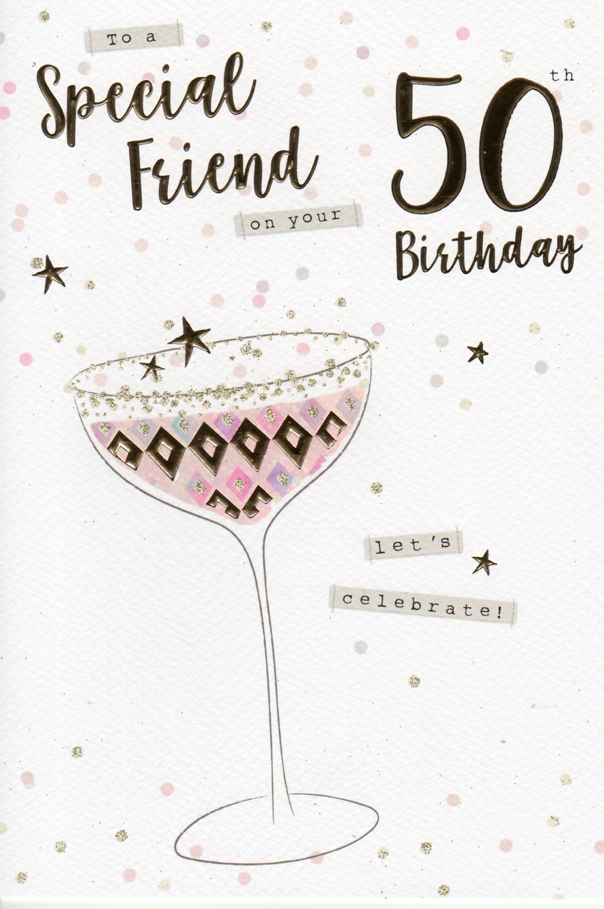 On the front the card reads: To A Special Friend On Your 50th Birthday let's celebrate!