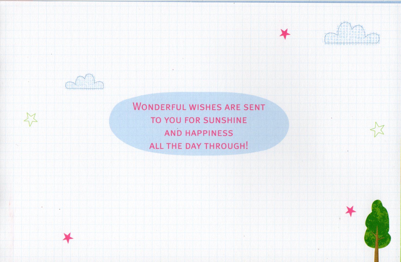 Inside reads: Wonderful wishes are sent to you for sunshine and happiness all the day through!