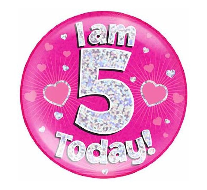Pink Holographic Birthday 5th Jumbo Pin Badge