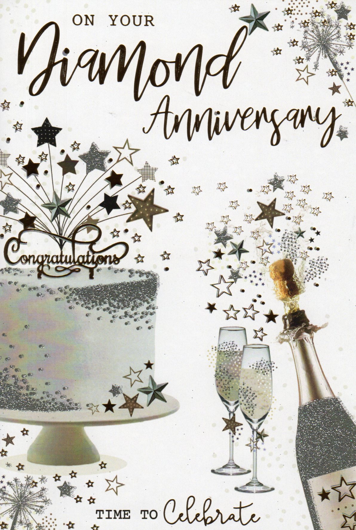 In the front the card reads: On Your Diamond Anniversary, Time To Celebrate