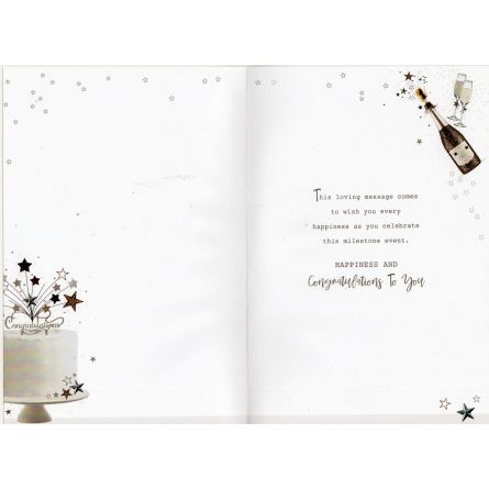 Inside reads: This loving message comes to wish you every happiness as you celebrate this milestone event. Happiness And Congratulations To You