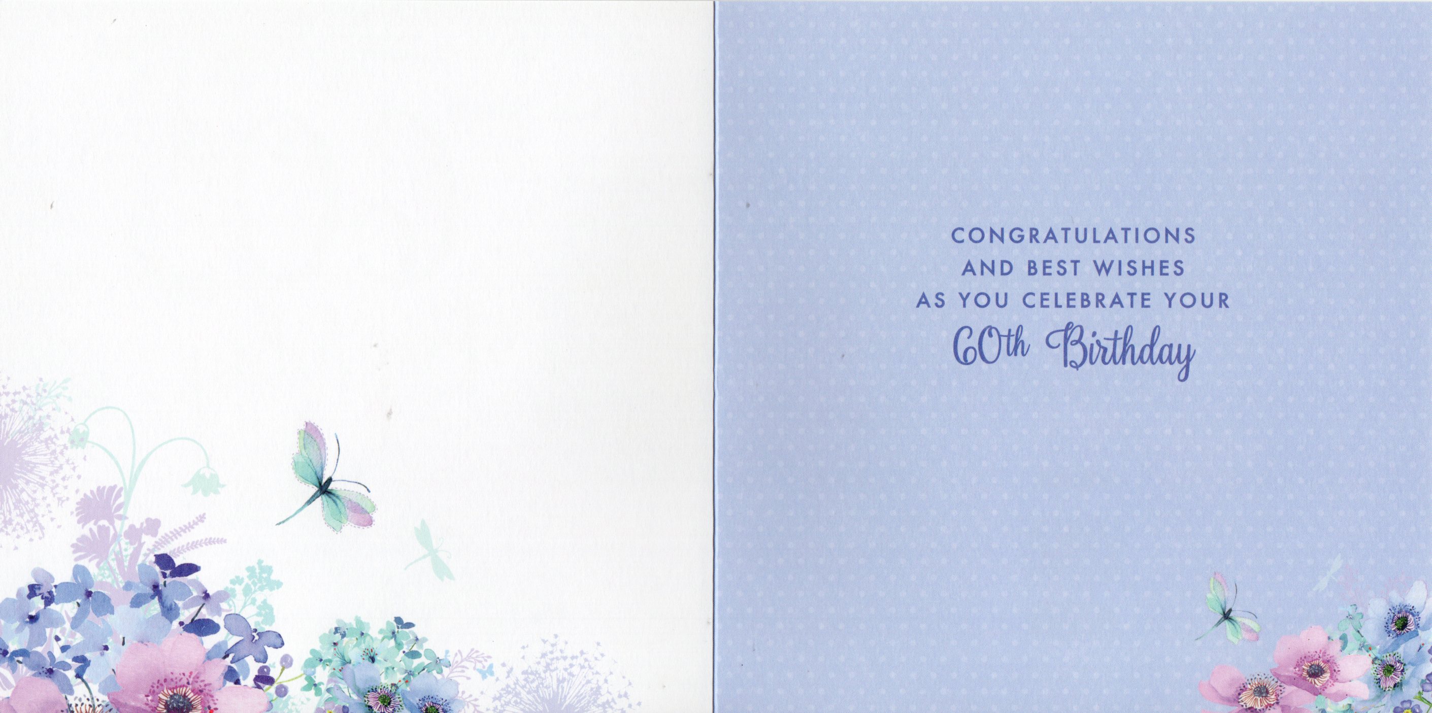 Inside reads: congratulations and best wishes as you celebrate your 60th Birthday