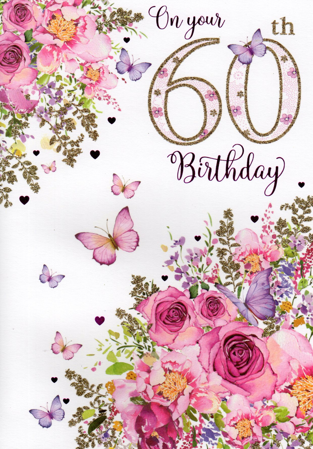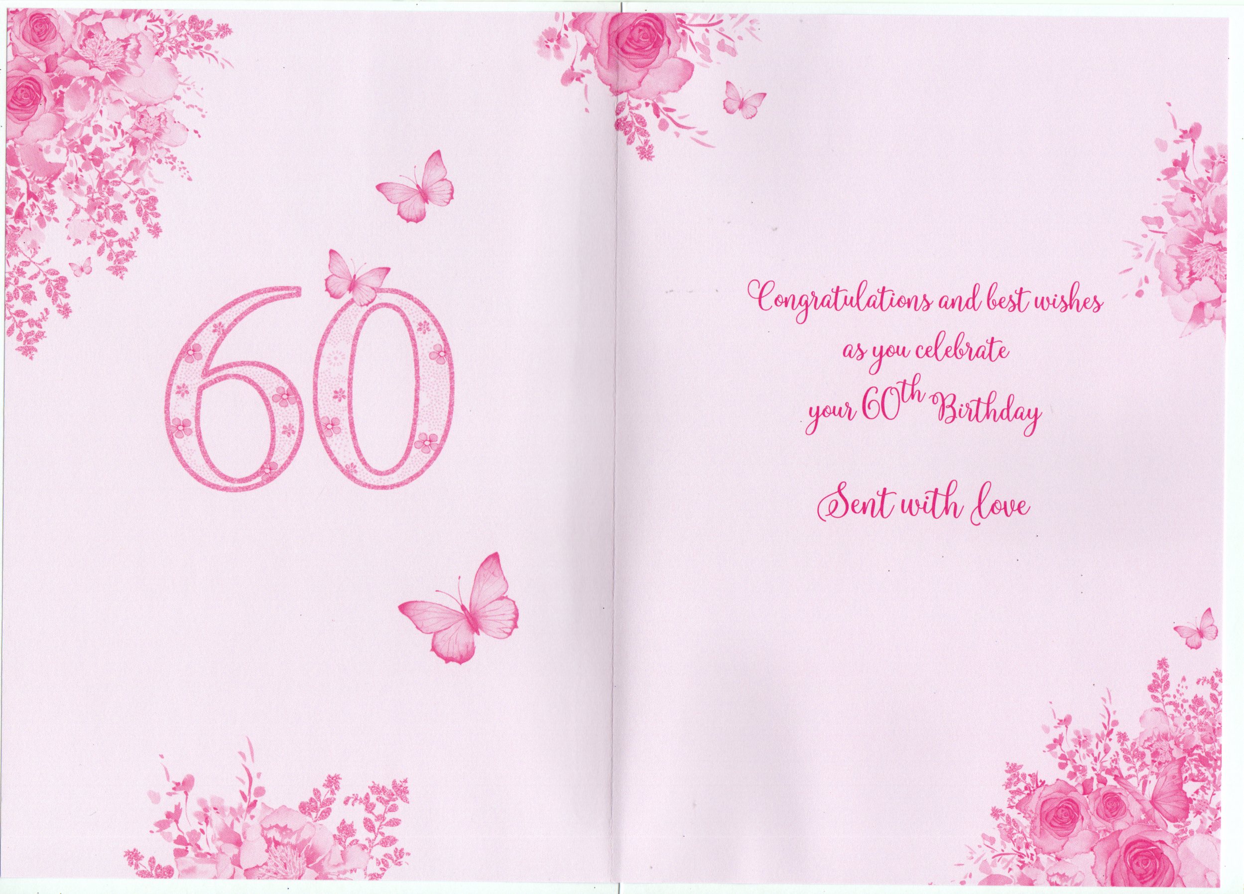 Inside reads: Congratulations and best wishes as you celebrate your 60th Birthday Sent with Love.