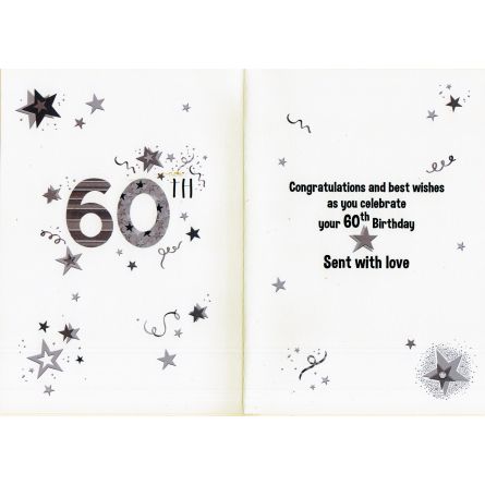 Inside reads: Congratulations And Best Wishes As You Celebrate Your 60th Birthday Sent With Love