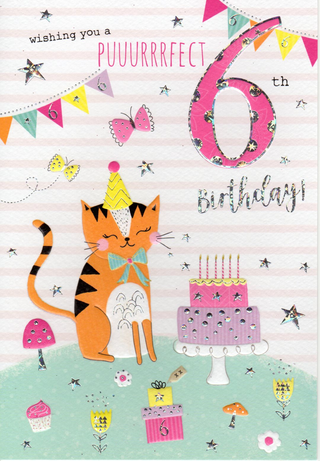 On the front the card reads: Wishing you a PUUURRRFECT 6th Birthday!
