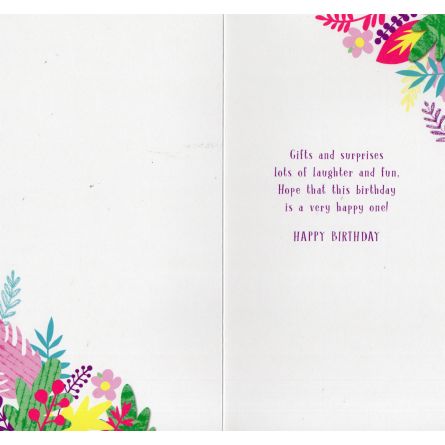 Inside reads: Gift and surprises lots of laughter and fun, Hope that this birthday is a very happy one! Happy Birthday