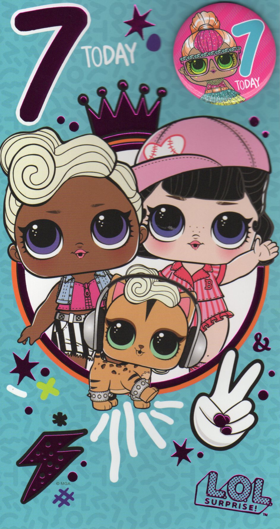 On the front the card reads: 7 Today Happy ( '7 today' birthday badge included)