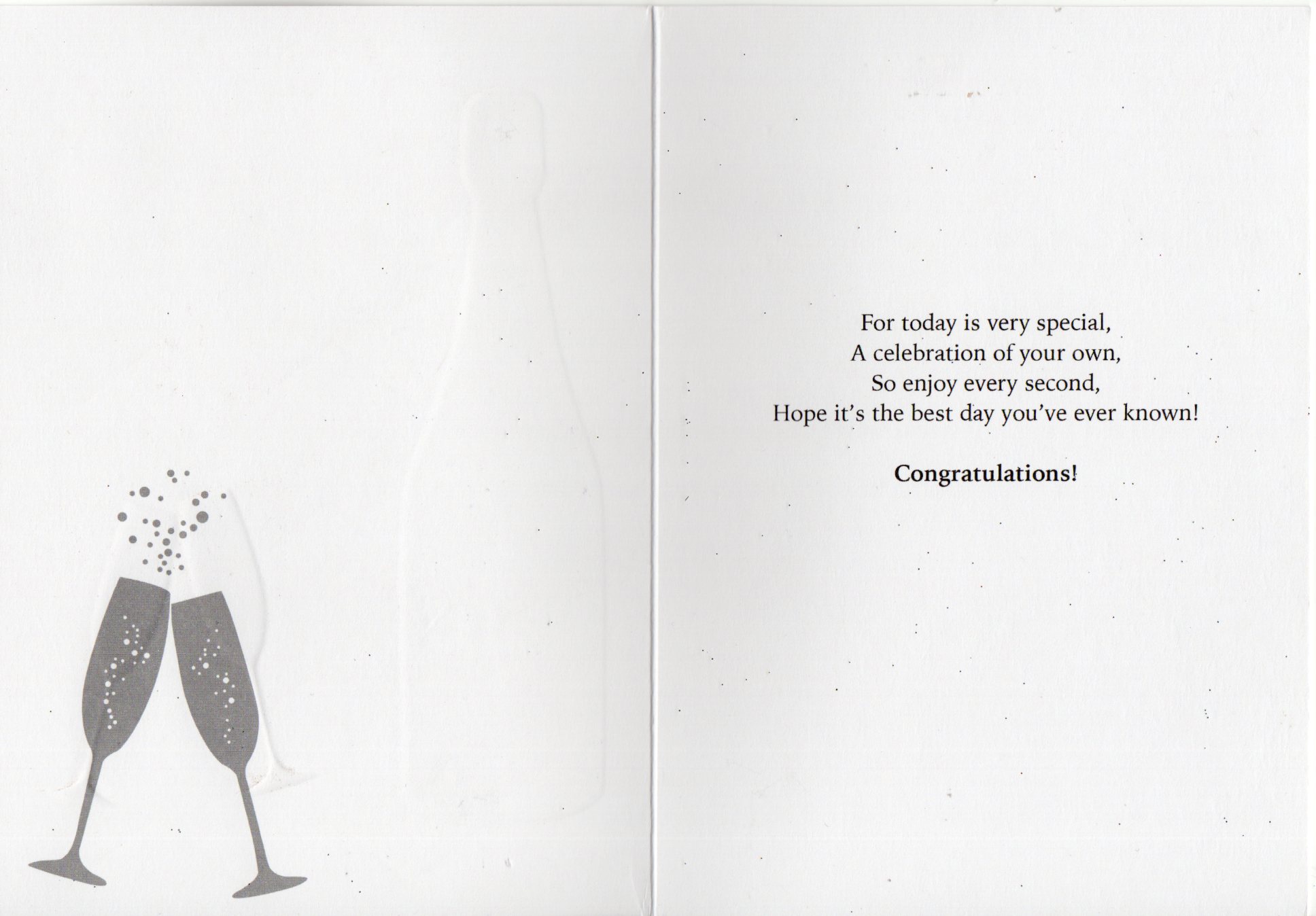 Inside reads: For today is very special, A celebration of your own, So enjoy every second, Hope it's the best day you've ever known! Congratulations!