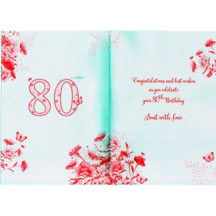 Inside reads: Congratulations And Lost Wishes As You Celebrate Your 80th Birthday Sent With Love