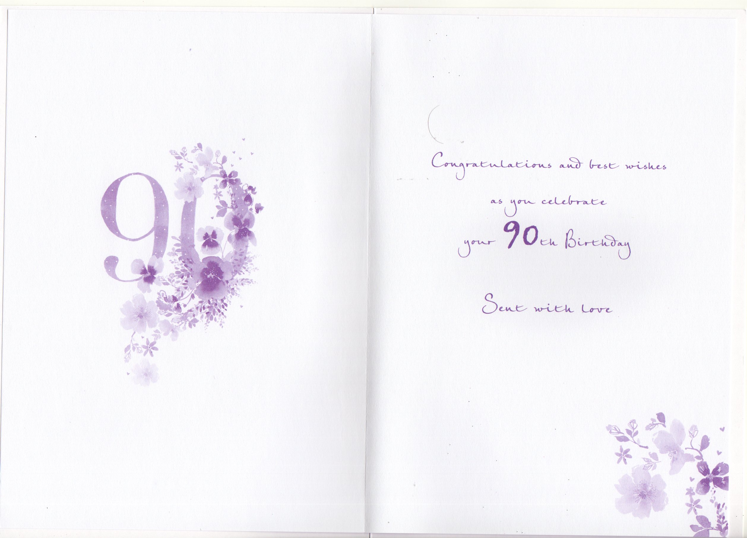 On the front the card reads: Wishing you a happy 90th Birthday.