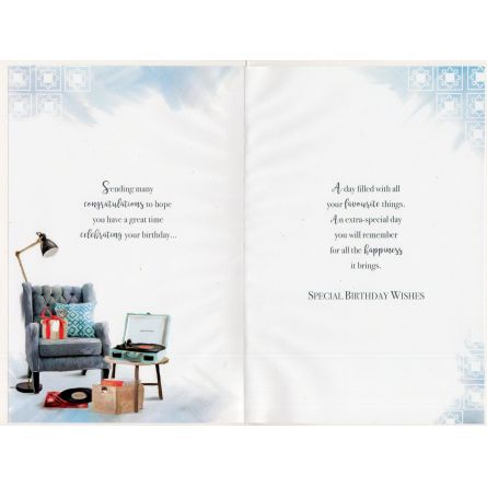 Inside reads: Sending many congratulations to hope you have a great time celebrating your birthday.., A day filled with all your favorite things. An extra-special day you will remember for all the happiness it brings. Special Birthday Wishes