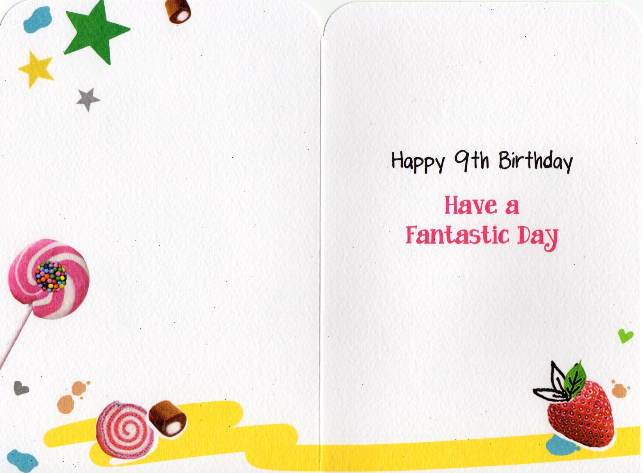 Inside reads: Happy 9th Birthday Have a fantastic day.