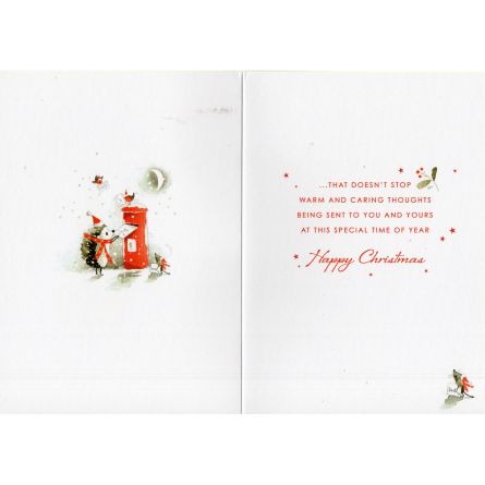 Inside reads: ...That Doesn't Stop Warm And Caring Thoughts Being Sent To You And Yours At This Special Time Of Year Happy Christmas