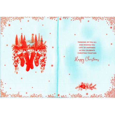 Inside reads: Thinking Of You All And Wishing You Lots Of Happiness As You Celebrate Christmas Together Happy Christmas