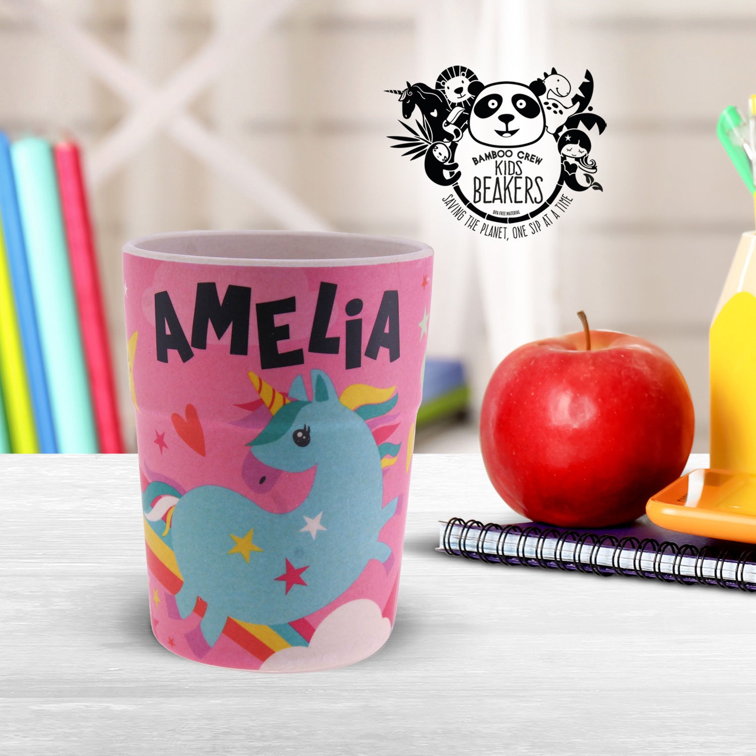 A fun little eco bamboo beaker, whatever the weather! Made from naturally strong bamboo fibre.