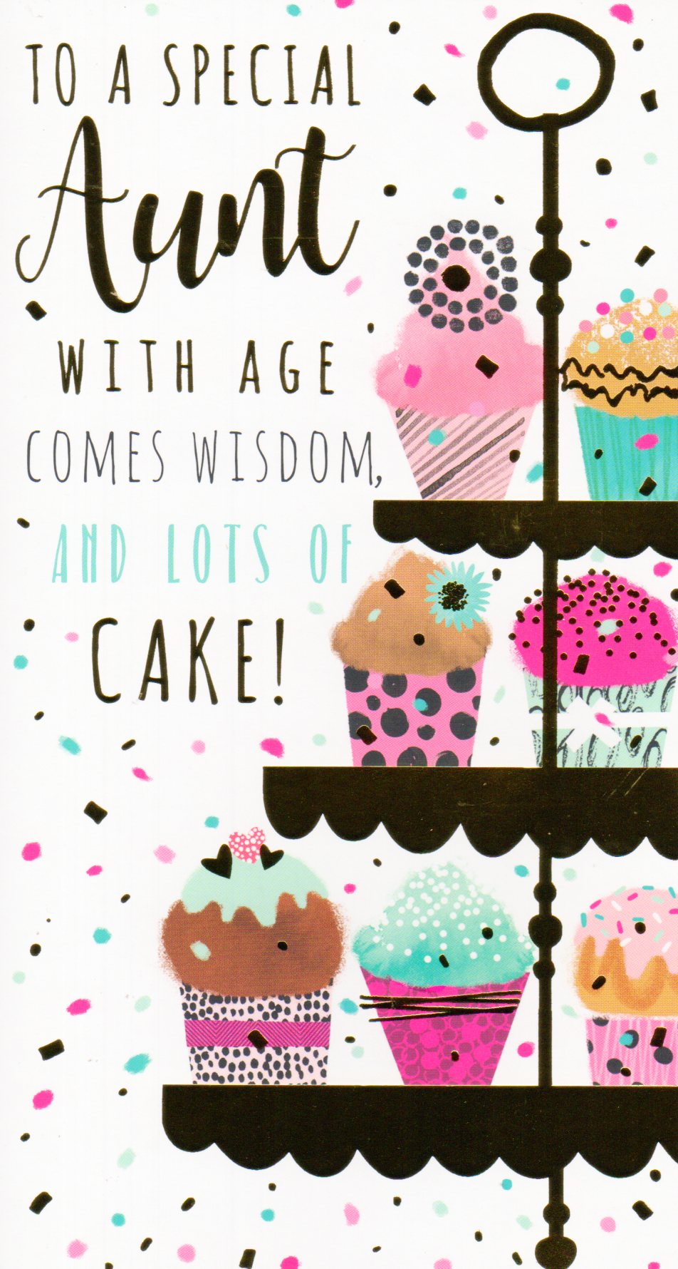 In the front the card reads: Niece hip hip Hooray it's your Birthday To A Special Aunt with age comes wisdom, and lots of cake!