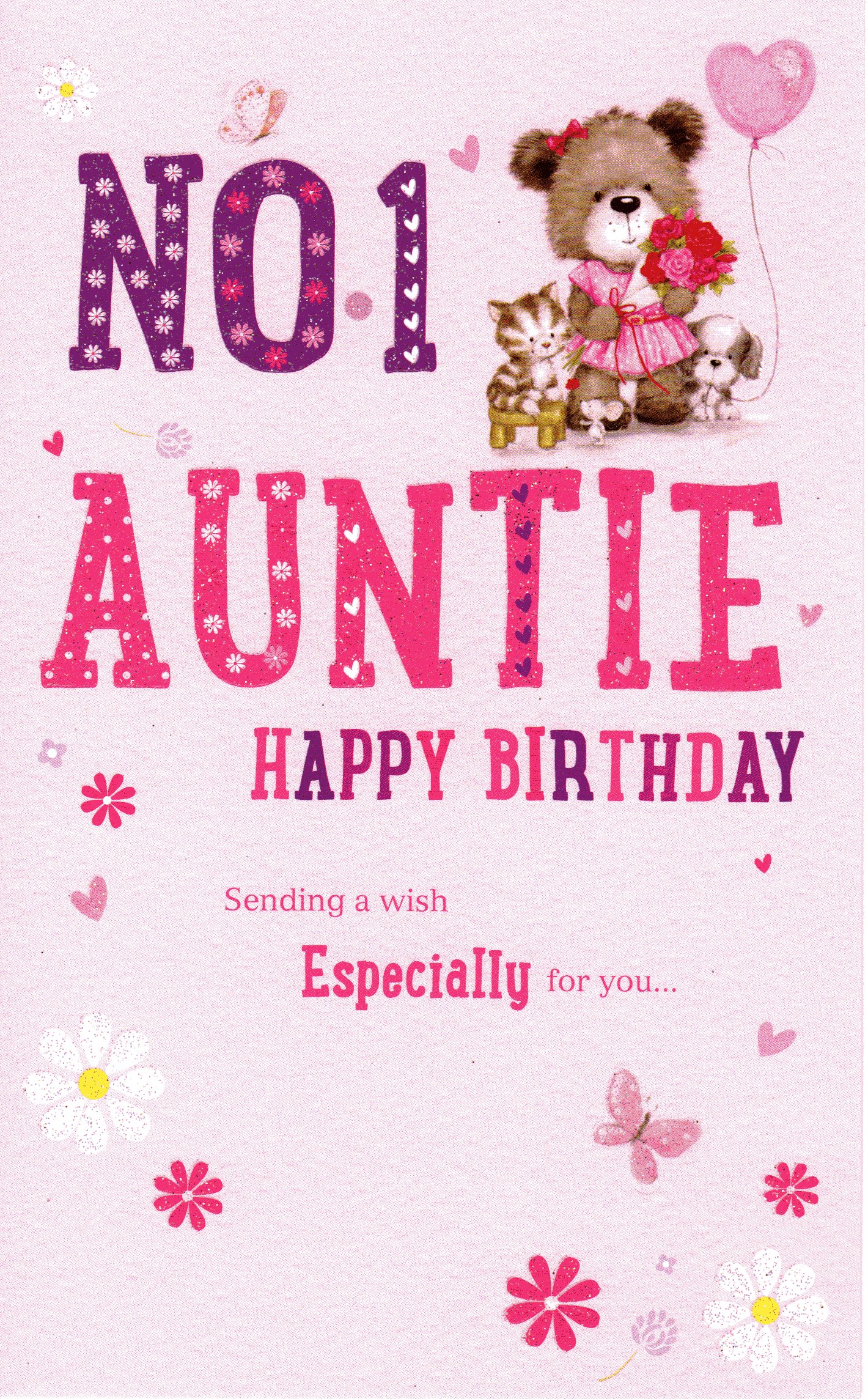 On the front the card reads: No.1 Auntie Happy Birthday Sending a wish Especially for you...