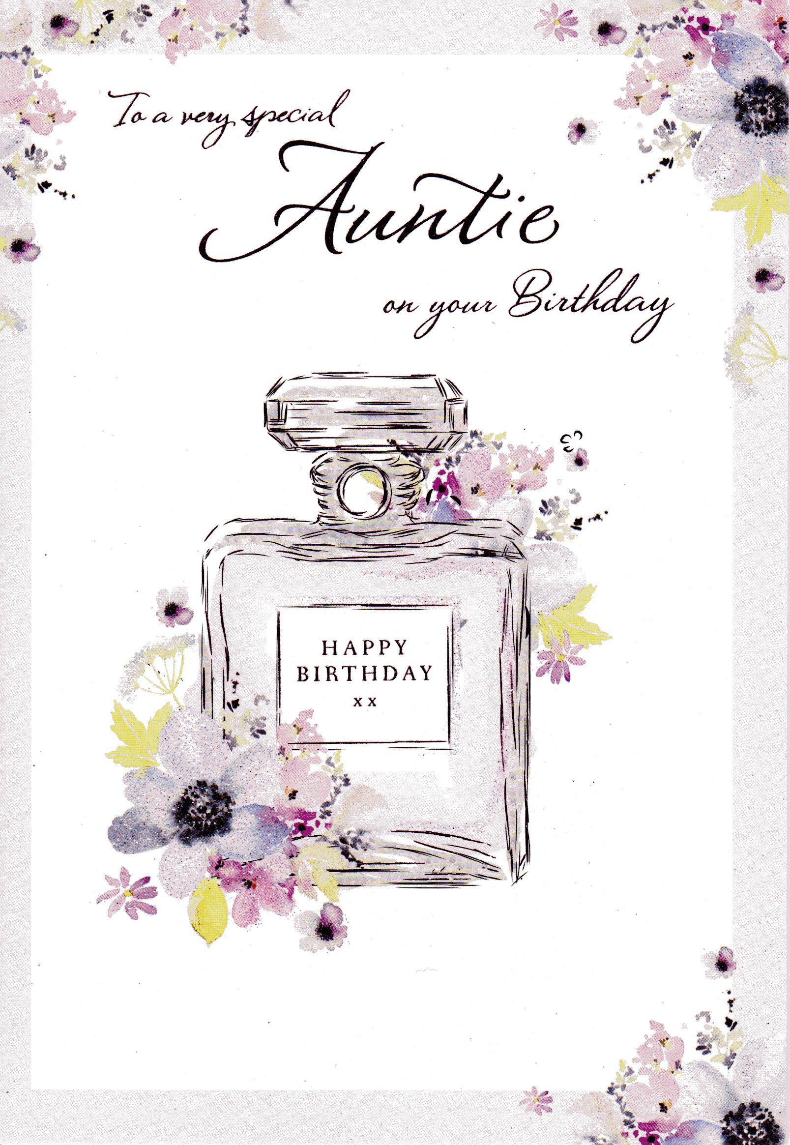 On the front the card reads: To a very special Auntie on your Birthday.