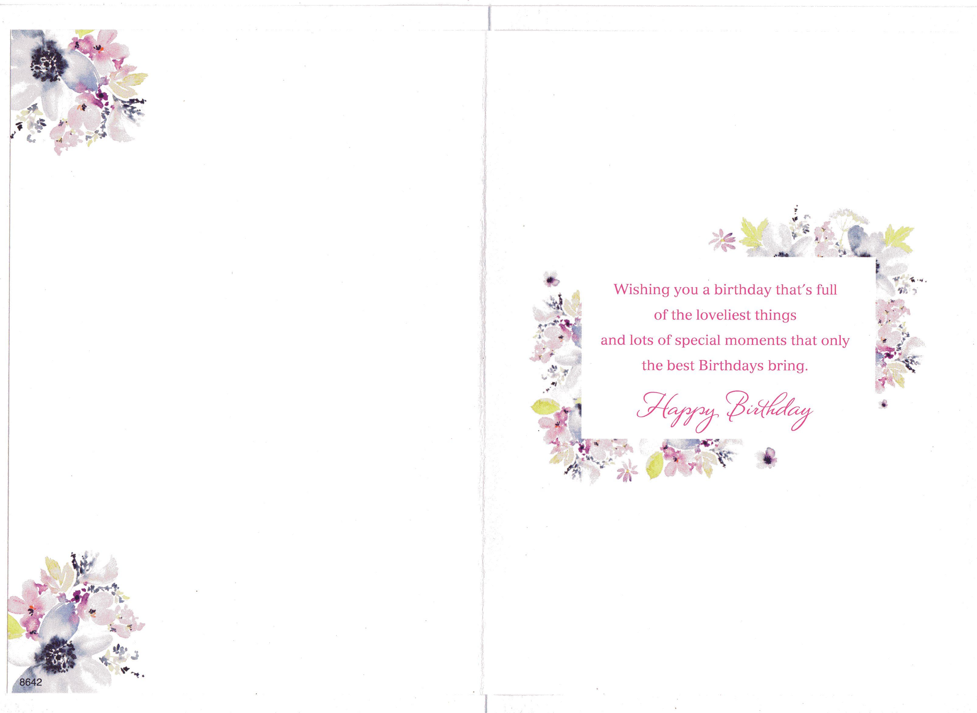 Inside reads: Wishing you a birthday that's full of the loveliest things and lots of special moments that only the best Birthday bring. Happy Birthday
