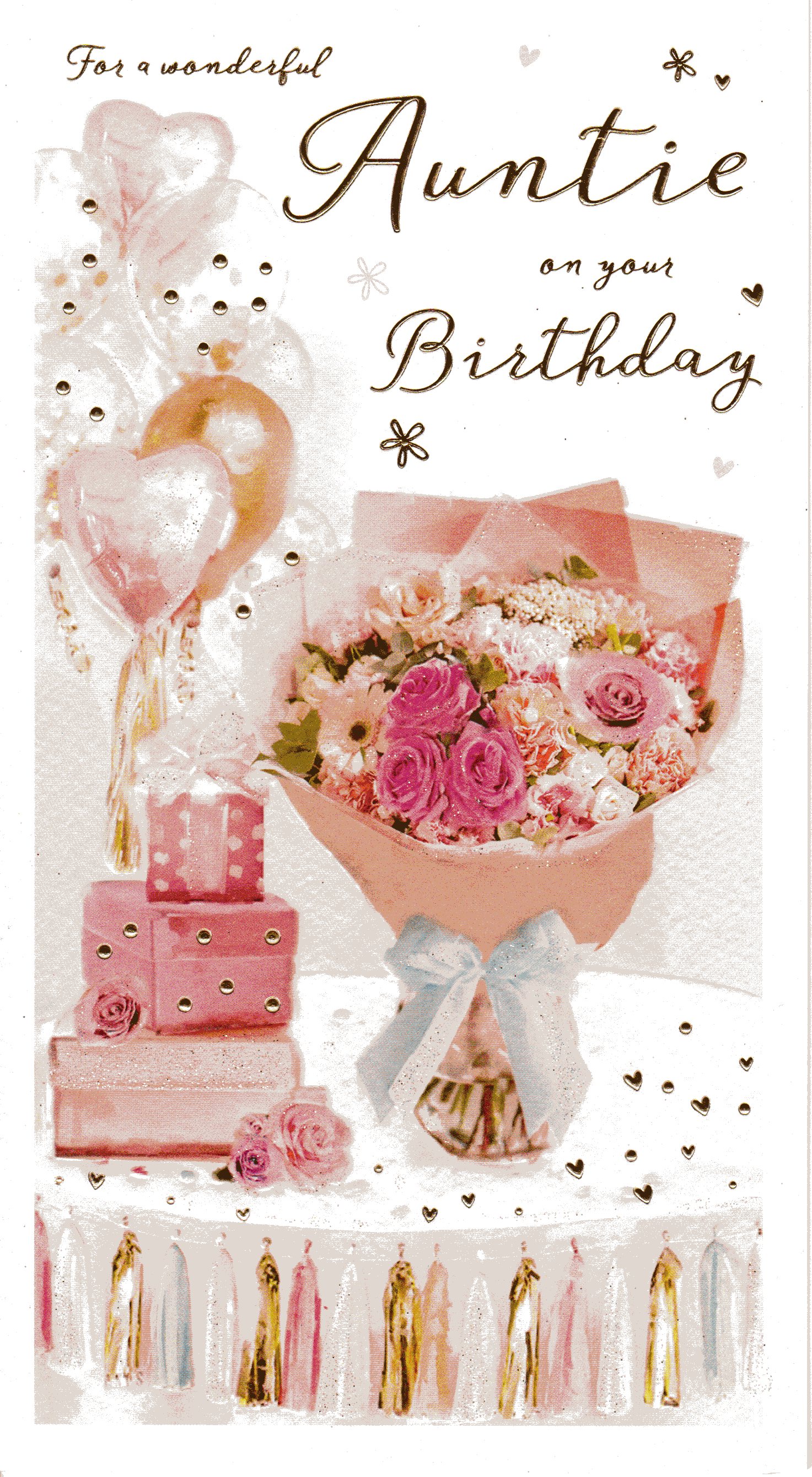On the front the card reads: For a wonderful Auntie on your Birthday.