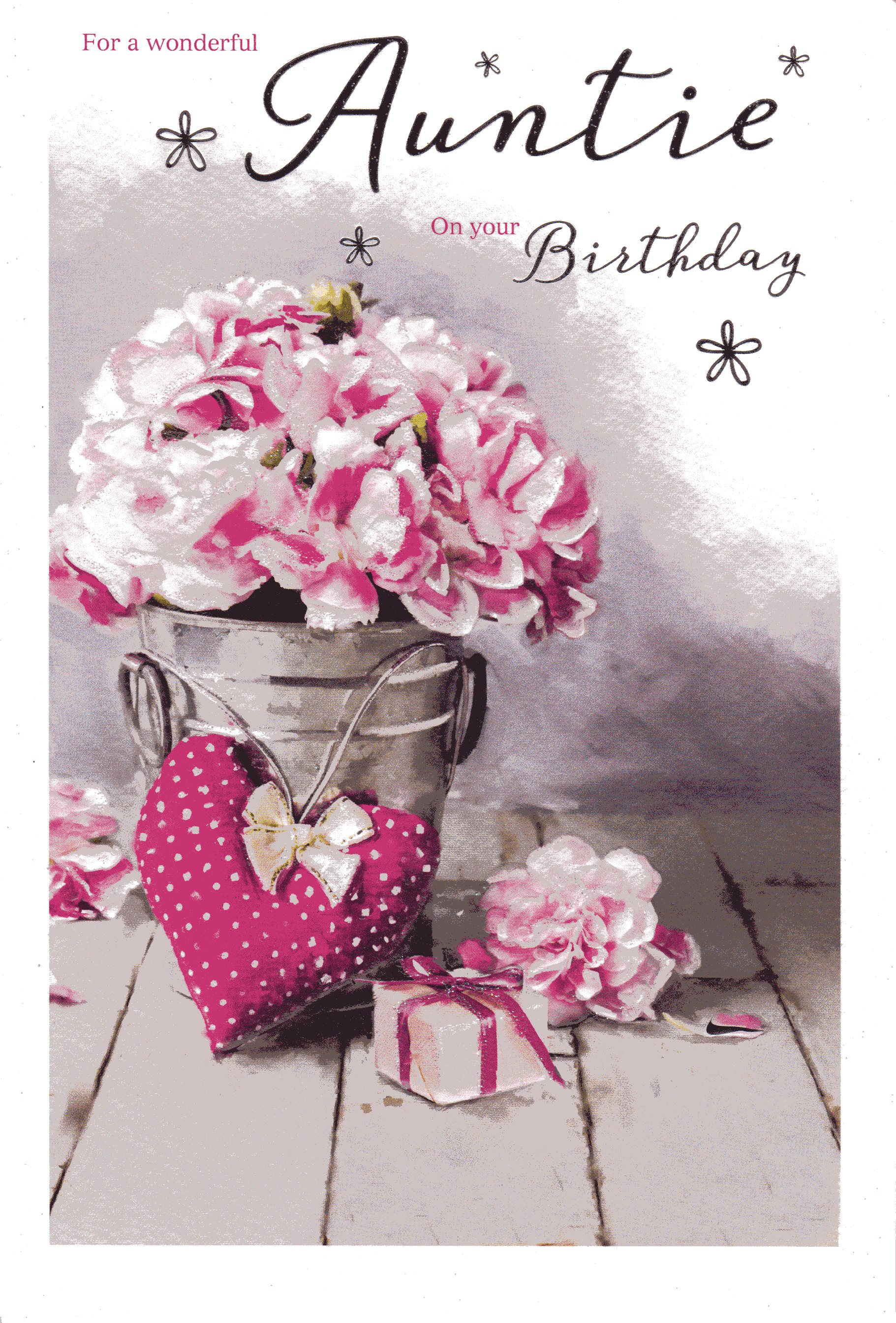 On the front the card reads: For a wonderful Auntie on your Birthday.