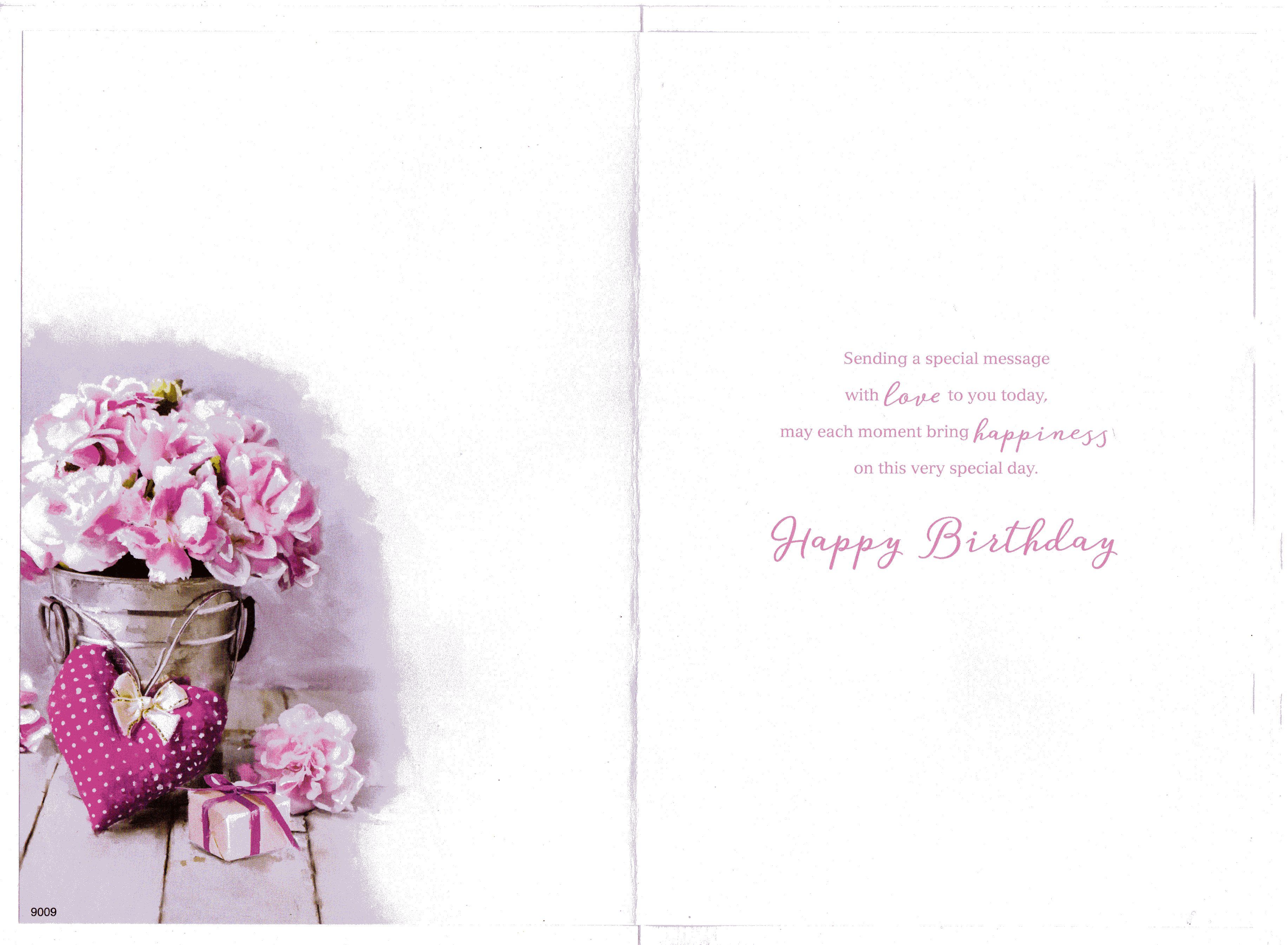 Inside reads: Sending a special message with love to you today, may each moment bring happiness on this very special day. Happy Birthday