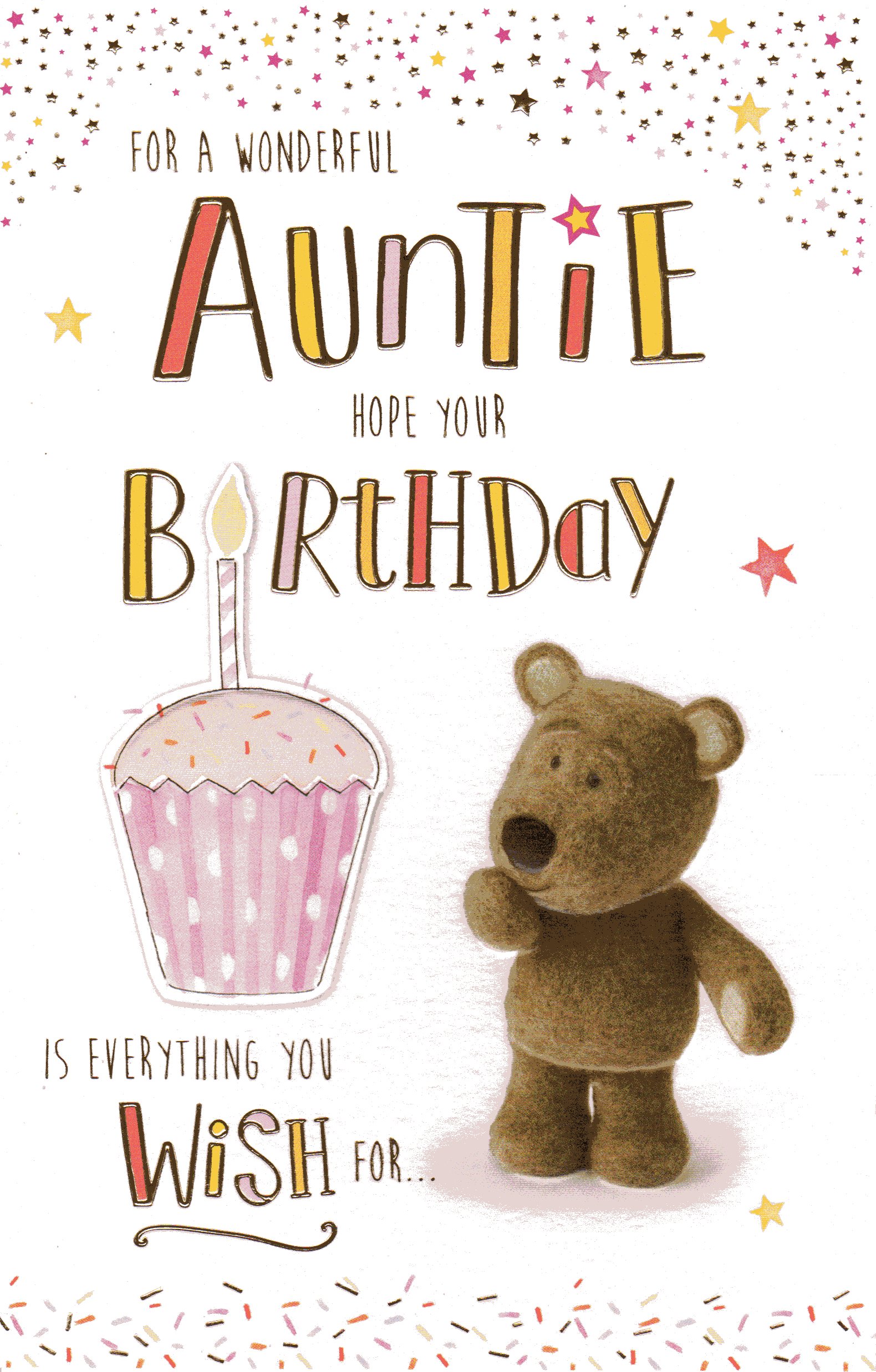 On the front the card reads: For A Wonderful Auntie Hope Your Birthday is everything you Wish for...